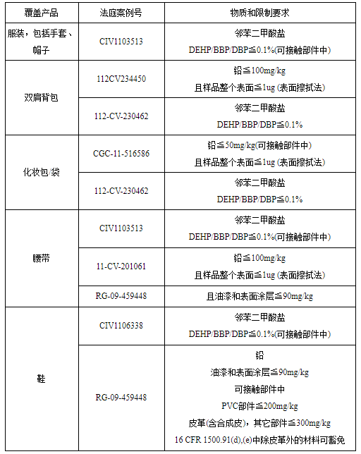 所有在加州銷售的產(chǎn)品,包括紡織品、玩具、雜貨、食品接觸產(chǎn)品、電子產(chǎn)品等,都會受到加州65提案的影響。產(chǎn)品中已知的有害化學物質沒有固定的限值要求,而是根據(jù)物質本身和產(chǎn)品類別所有不同。這些限值來自于消費者或環(huán)保團體因特定產(chǎn)品含有有毒化學物質而向法庭提出訴訟,并在訴訟中達成的和解協(xié)議。
